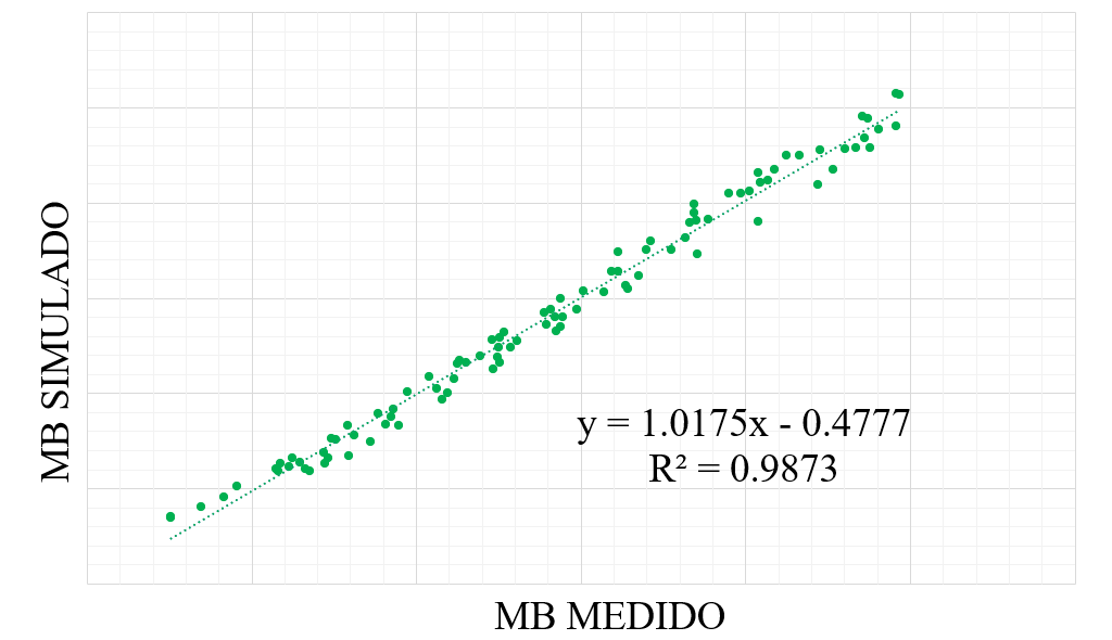 la simulación a la monitoreada en los boxes de ensayo. Este