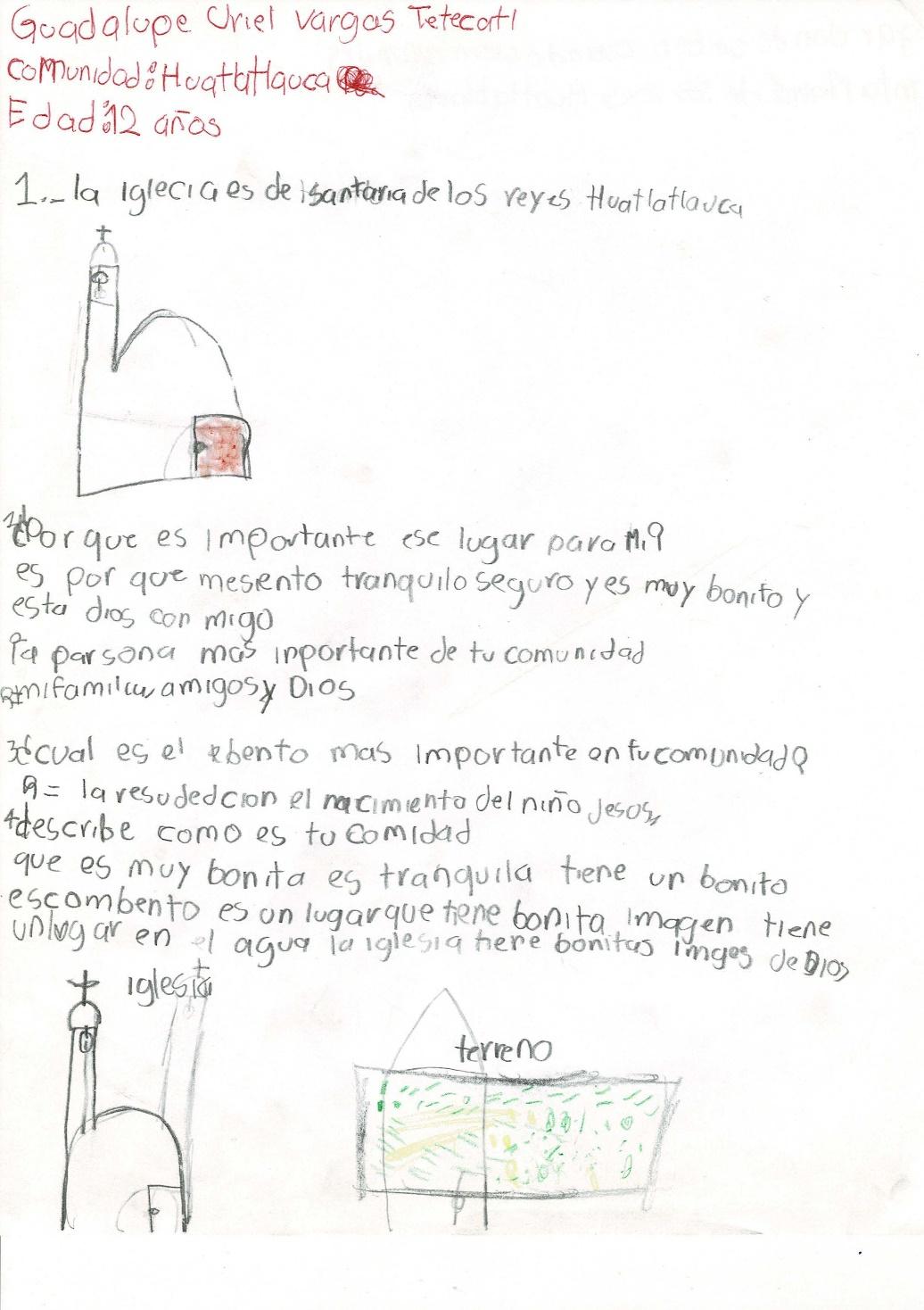 Con la finalidad de conocer la diversidad del sistema, las muestras fueron de máxima variación, logrando 21 entrevistas a miembros de la comunidad entre 18 y 86 años y un grupo focal con 41 niños entre 7 y 14 años de 9 localidades o barrios de Huatlatlauca, sumando también las pláticas informales que se registraron en el diario de campo. El grupo focal consistió en una actividad de 6 preguntas en donde los niños contestaron a través de dibujos y respuestas cortas, todas relacionadas con su percepción de la valoración espacial, social y, de usos y costumbres. El trabajo etnográfico efectúa un análisis verbal, espacial y territorial, con la finalidad de visibilizar las dinámicas de Huatlatlauca identificando el proceso de patrimonialización a través de los propios habitantes que residen en una realidad geográfica desde los estudios críticos del patrimonio, a partir de un punto de vista antropológico. Se reconoce la legitimidad y permanencia en la transmisión de valores culturales locales, así mismo se visualiza las líneas de responsabilidad y autoridad establecidas por la sociedad y que continúan funcionando en torno a una lógica de protección y cuidado, dado a que el patrimonio arquitectónico contiene un precedente intangible.