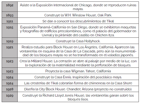 Si bien existen estudios sobre la influencia que la arquitectura japonesa y maya tuvieron en Wright (Emmer, 2022), Japón, México y sus culturas ─no únicamente su arquitectura─ causaron una impresión profunda en el arquitecto que aún hoy los estudios historiográficos no han terminado de delimitar. Su acceso a la arquitectura como una condición de experiencia temporal y espacial ─insignia del arquitecto norteamericano─ puede ser estudiada desde la heterotopía (figura 2).