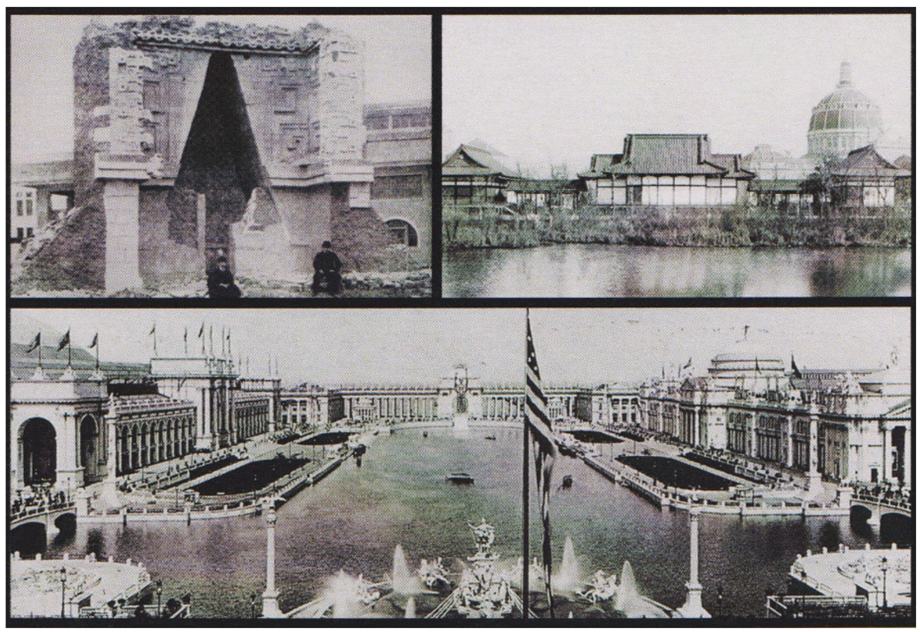 de ruinas mayas de Uxmal y Templo Ho-o-Den en la Exposición Mundial