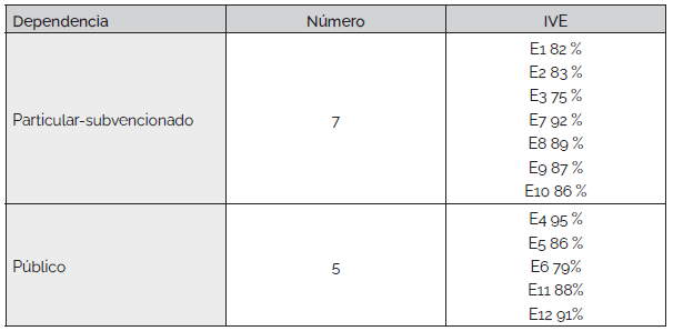 La recolección de datos fue realizada mediante entrevistas semiestructuradas, siguiendo las orientaciones de Kvale (2011), en las que participaron 12 directivos de establecimientos públicos y particulares subvencionados, como indica la Tabla 1.