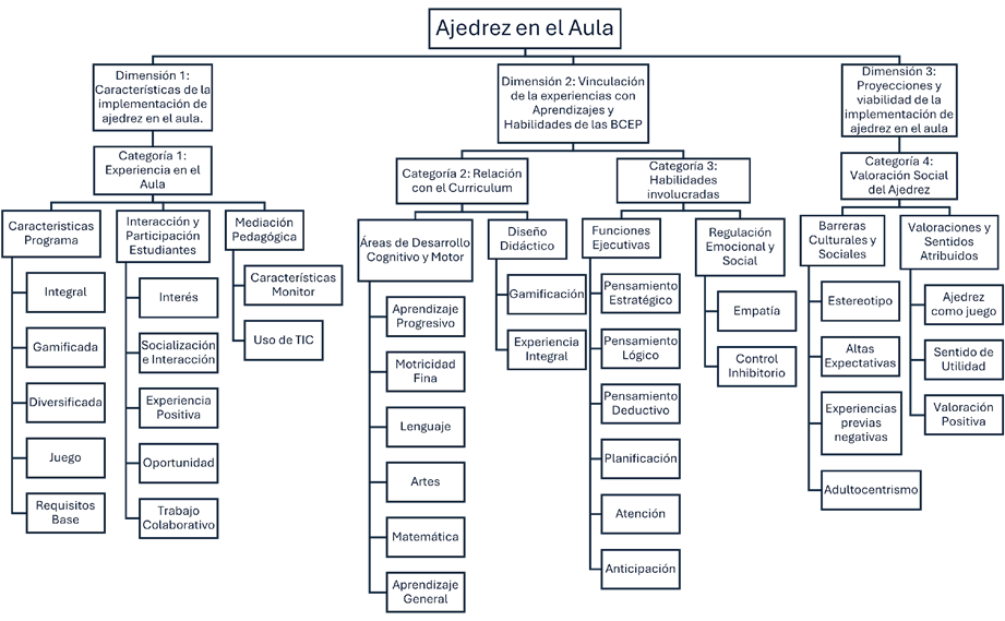 Esta estructura jerárquica facilita una comprensión integral de las condiciones, logros y retos del ajedrez en el contexto educativo (ver Figura 2).