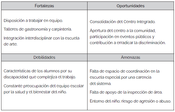 Además, la falta de un programa específico enfocado en las necesidades de los alumnos de educación especial y de disposiciones que reglamenten el funcionamiento del Centro Integrado, lleva a que los equipos deban buscar alternativas para llevar a la práctica la experiencia educativa.