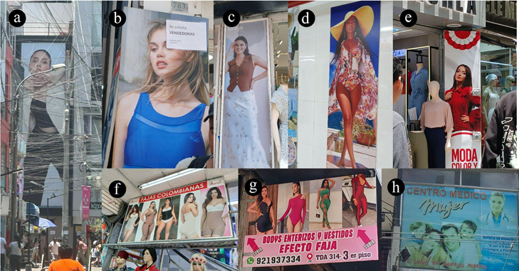 Entre las principales limitaciones metodológicas destaca la dificultad para registrar fotografías en algunos casos debido a la aglomeración de personas. Además, según comunicación verbal con diseñadores gráficos que producen estas imágenes, la mayoría proviene de bancos de imágenes o se obtiene gratuitamente de buscadores en Internet. No obstante, esta aparente arbitrariedad en la selección de las imágenes publicitarias no implica una neutralidad valorativa ni una ausencia de significación en los espacios populares, sino que refleja una intencionalidad inscrita en la semiosfera y la cultura de sentido que configuran las prácticas de consumo.
